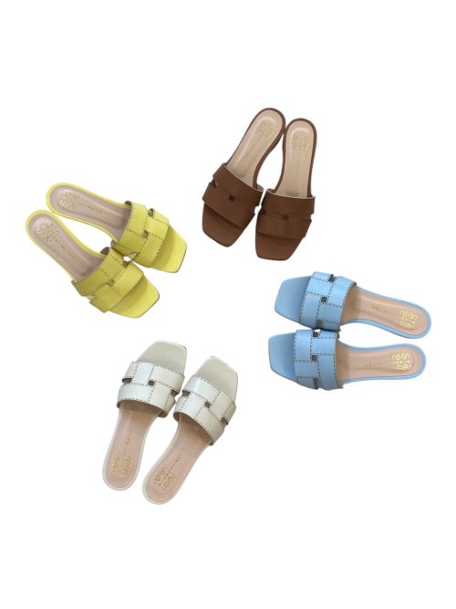 Flat con due fasce regolabili e fibbietta decorativa.Tacco basso altezza 2cm con comodo cuscinetto interno.Disponibile nappa bianco,camoscio testa di moro e camoscio cuoio.Super chic!!!